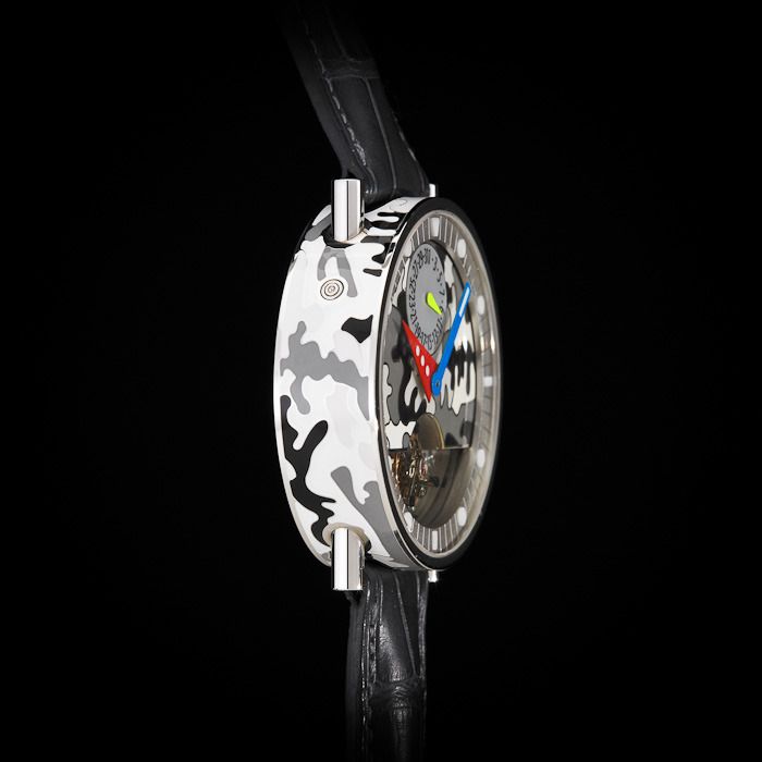 white Cloisonne enameling with “Camouflage” pattern on the dial