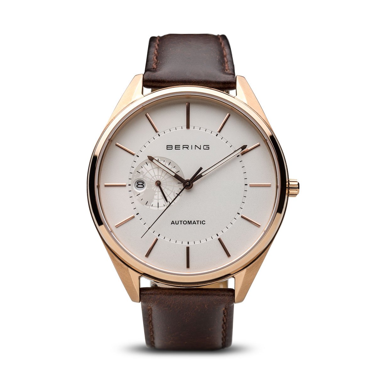 BERING Time 16243-564 Men Automatic Collection Watch with Calfskin Strap and scratch resistent sapphire crystal. Designed in Denmark
