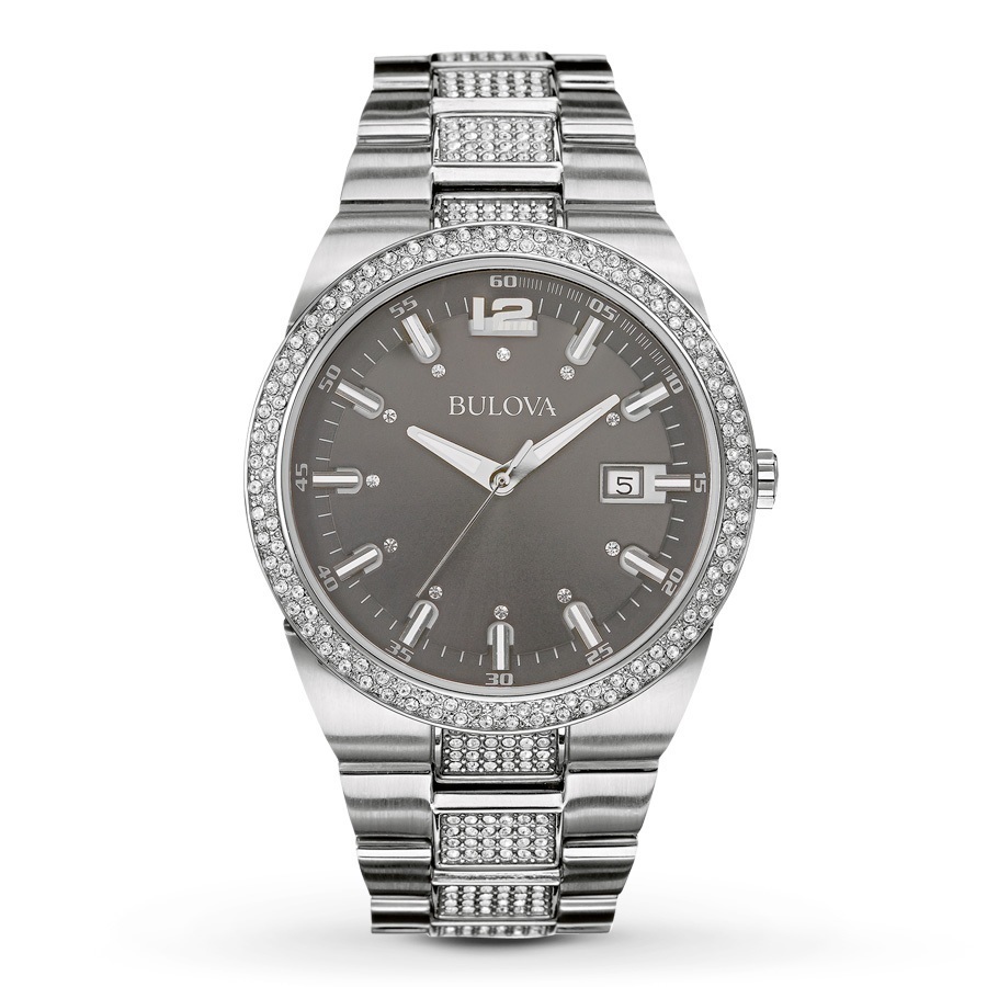 Bulova Men's 96B221 Crystal Accents Gray Dial Silver Tone 43mm Watch
