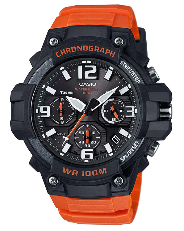 Casio Men's Chronograph Quartz 100m Black/Orange Resin Watch MCW100H-4AV |