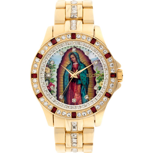 Elgin Men’s Lady of Guadalupe Graphic Dial Crystal Accented Gold-Tone Watch