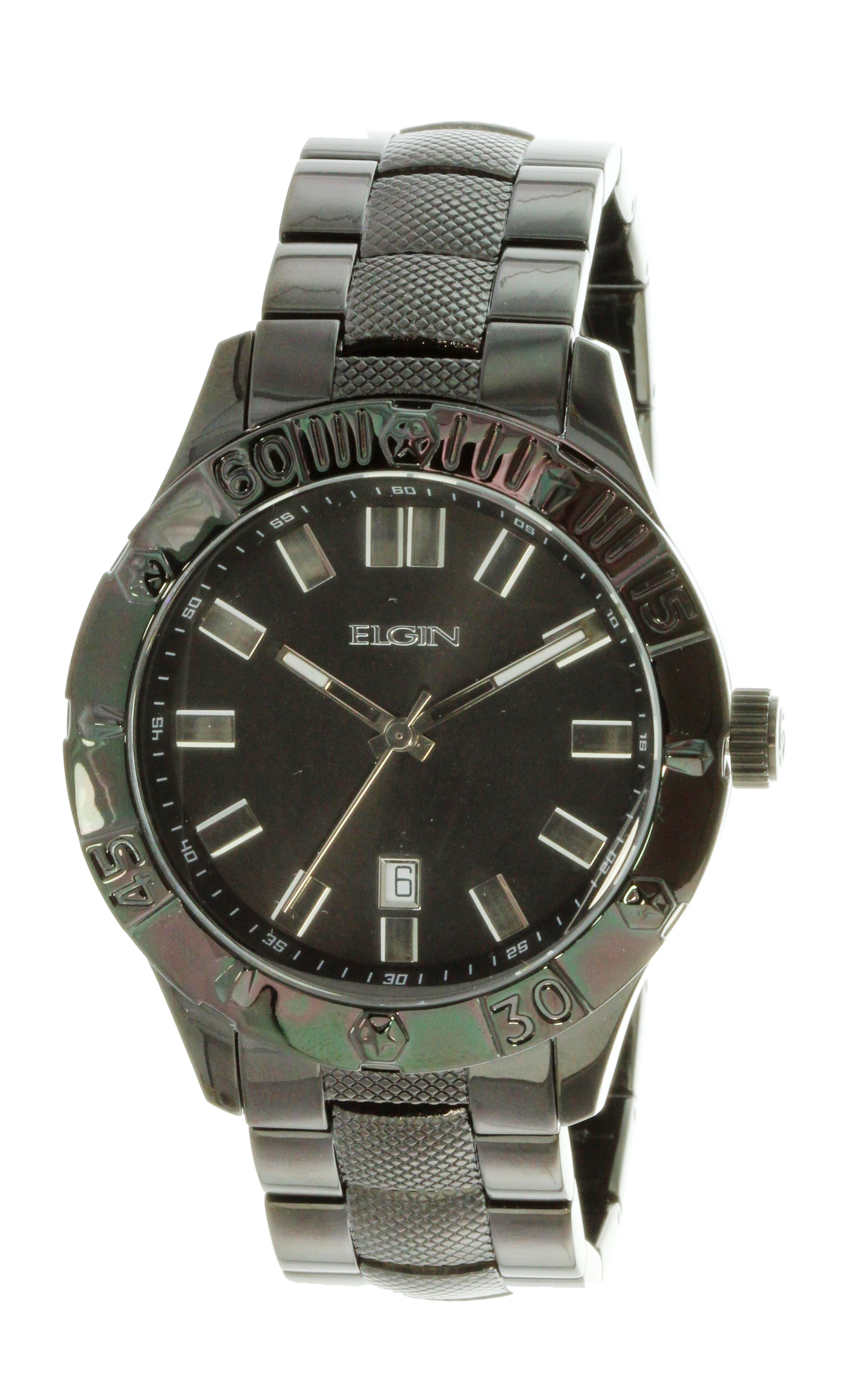 Elgin Men’s Round Analog Black On Black Watch With Date FG7090