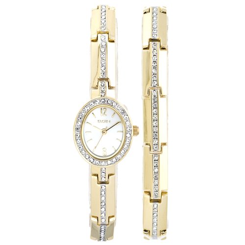 Elgin Women’s Crystal Accented Dress Watch and Bracelet Set