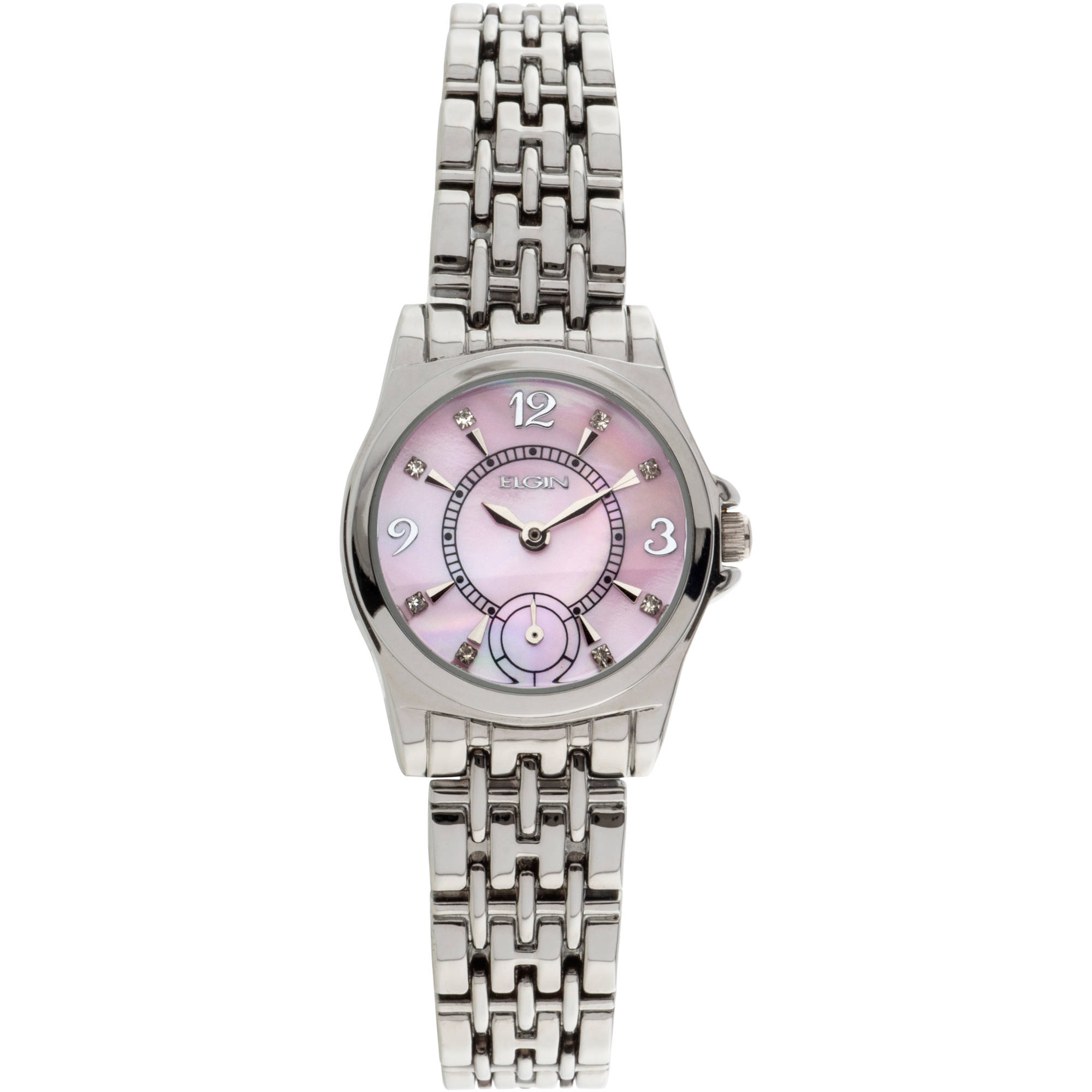 Elgin Women’s Silver-Tone Light Pink Mother of Pearl Multifunction Dial Bracelet Watch