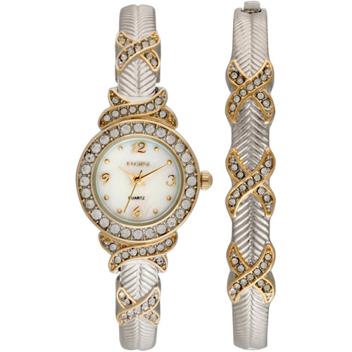 Elgin Women’s Watch and Bangle Set, Two Tone