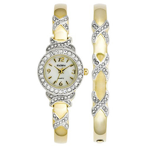 Elgin Women’s XO Watch and Bracelet Bangle Set