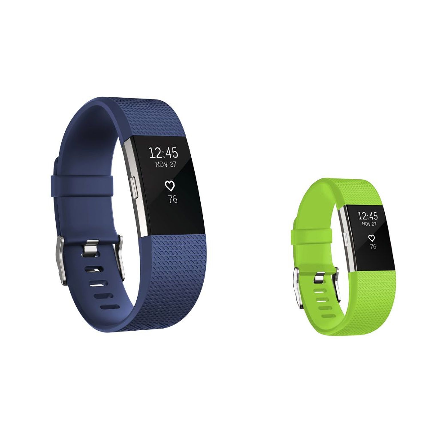 Fitbit Charge 2 Bands, by Zodaca 2-pack (Drak Blue & Green) Replacement Accessory Soft Silicone Rubber Adjustable Wristband Strap Band with Watchband-style Buckle for Fitbit Charge 2