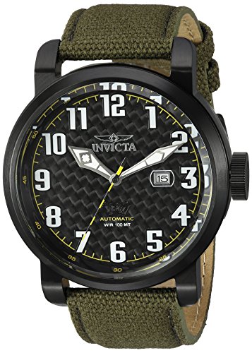 Invicta Men's 'Aviator' Japanese Automatic Stainless Steel and Silicone Casual Watch, Color:Green (Model: 23075)