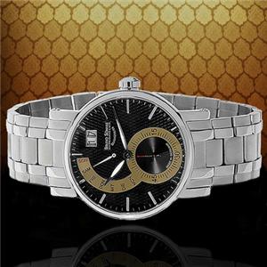 The case is brushed stainless steel with a polished silver bezel. The bracelet is created using five links of solid stainless steel that secures to your wrist with a deployant buckle. This watch is wonderful to behold, and amazing to wear. Feel the quality of a Bruno Sohnle watch today.